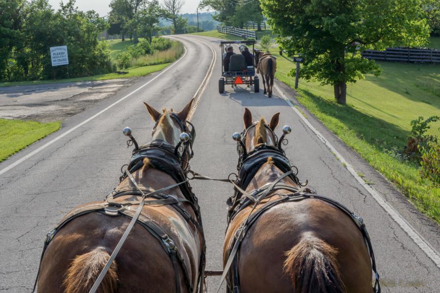 for the Saturday ride covered about 18 miles of mostly shaded, back roads that allowed the animals and the riders to stay somewhat comfortable. Lee drove his team of