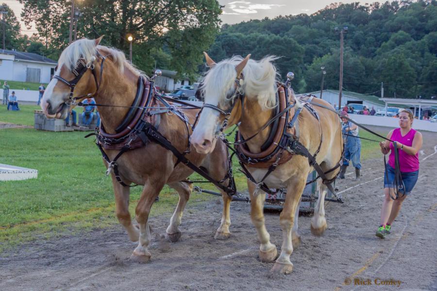 at the Lions Club fairgrounds in Owingsville, Kentucky. The show is administered by the Eastern Kentucky Draft Horse and Mule Association. There was a shower mid afternoon on Friday that