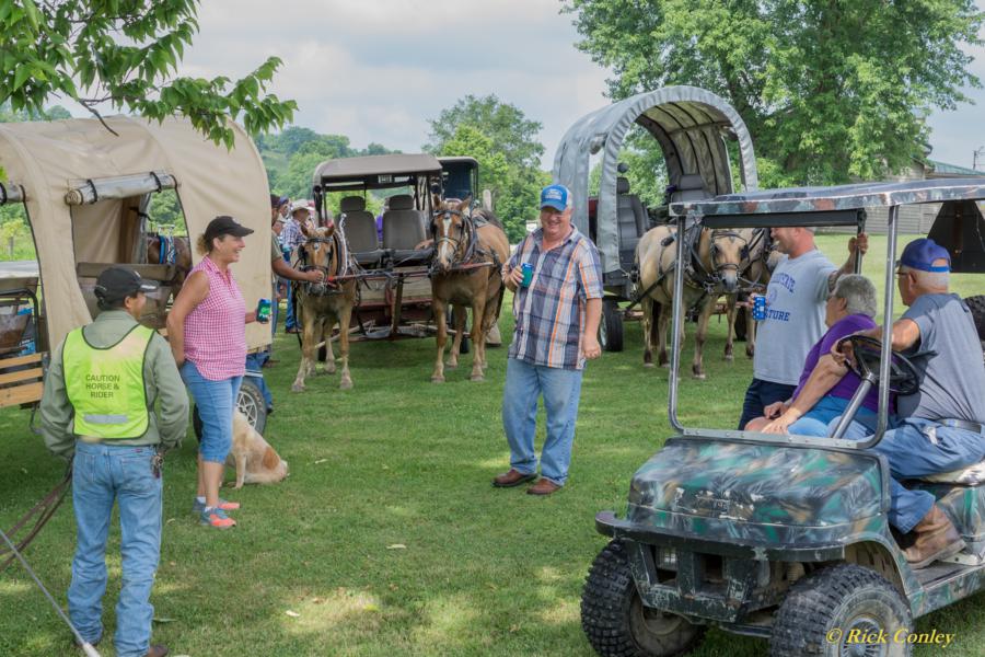out on the ride on Saturday morning, we had 5 wagons, 1 golf cart along with 3 outriders and because of the high humidity, we spent a lot of our time resting the teams and socializing. As is normal with this