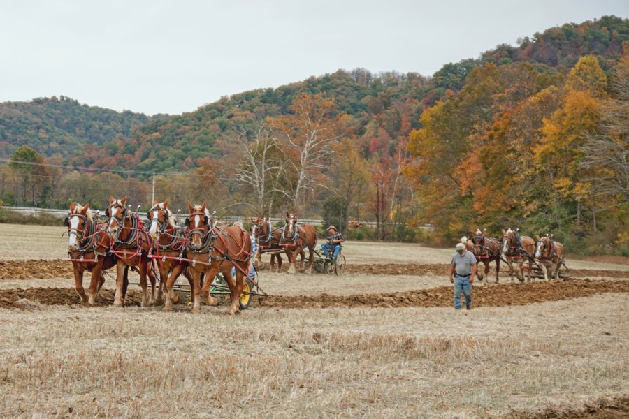 The old adage about it being too wet to plow, doesn't appear to apply to the US Draft Horse and Mule Plowing Contest. So, despite over 3/4 of an inch of rain overnight, this year's competition at Downs Farm in Olympia Kentucky took place as scheduled on Saturday, October 26, 2019. There had been predictions of a 100% chance of rain on Saturday, but it had been decided at the participants dinner on Friday evening that contestants had come from several states and went to a lot of trouble to get there, so they would plow regardless of the weather. As it turned out, the light rain that was falling on Saturday morning lifted about 10 AM and the plowing competition got underway as scheduled. The entire state of Kentucky had been under drought conditions throughout September, so the ground was able to absorb the rain that had fallen and, while not ideal, the plowing was not too bad. There were 7 different classes although some classes only had one entry and some contestants entered more than one class. As has been the tradition at this event, 3 different independent judges were used to try ensure fair results. Judges had 10 categories to judge and gave each contestant up to 10 points in each category. A total of up to 300 points were available to each contestant in a class (100 per judge) with the winner being the one with the highest point total. The overall winner is the contestant with the highest point total in all the classes. This years High Point winner was Mike Atkins from Ohio with 278 points. Mike has been the high points winner several times in the past. He and his mules are the perennial team to beat when it comes to this event. In second place was Megan Pattison from WVA with 271 points. Megan had competed last year and won the Novice class which meant she had to go up against the big boys this year in the Walking Plow class. A lot of people were warning Mike to watch out as his reign as king of the hill may be challenged in the future by a GIRL! After the ribbons and trophies had been handed out, Doris Mosher from Ohio awarded special halters to each of the class winners to show her appreciation for the camaraderie and the sportsmanship that this event epitomizes. For those who were still around on Sunday morning, Orin Perdue from Maryland and Mark Watson from West Virginia conducted a church service before everyone headed out to return home. A heartfelt thank you to Mike and Joyce Downs for again hosting this event. It was a lot of work for them, but everything was first class and I think that everyone who attended really enjoyed their time in the Bluegrass State!! |